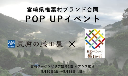 豆乳化粧品・大豆食品等の販売を手掛ける豆腐の盛田屋(株式会社JIMOS 福岡県福岡市)は、宮崎県椎葉村の豆腐工場再建に伴い、2024年8月1日(木)に豆腐の初おろしイベント“椎葉 豆腐まつり”を開催し、豆腐・豆乳の販売を再開。今回、椎葉村ブランドとしてバターサンドが有名な『菓te-ri』と合同のポップアップイベントを2024年8月16日(金)~18日(日)の期間、宮崎ブーゲンビリア空港にて行います。