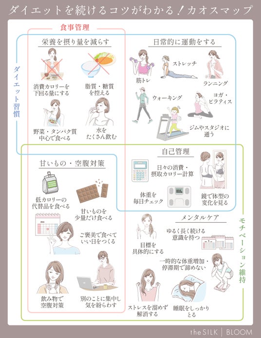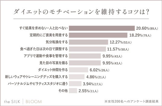 株式会社HYV(本社:東京都目黒区、代表取締役:茅野 航平)が運営する「the SILK BLOOM」では、「ダイエットを続けるコツ」に関するアンケート調査を実施いたしました。