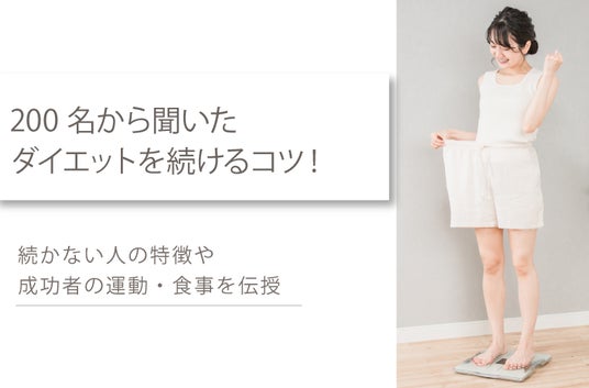女性読者200名のアンケート結果をもとにダイエットを続けるコツを紹介しました。