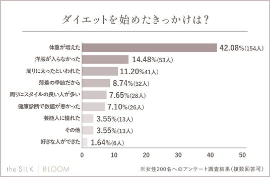 今回は以下がキッカケでダイエットを始めた女性200名の声をもとにまとめているので、ぜひ最後まで読み参考にして、人生最後のダイエットを始めましょう!