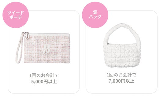 また、7,000円(税込)以上ご購入いただいたお客様には、バニラコ雲バックをプレゼントします!