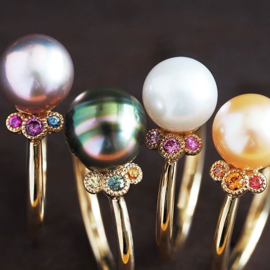 ひとつひとつ個性の異なるパールに合わせてサファイアがあしらわれています。