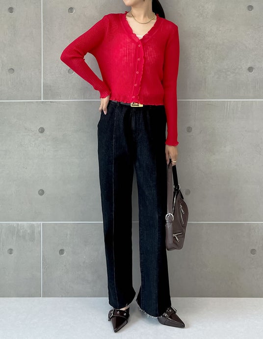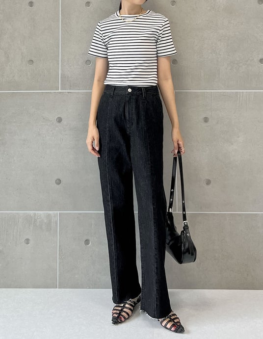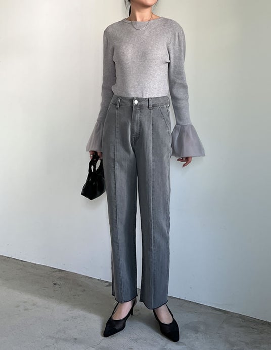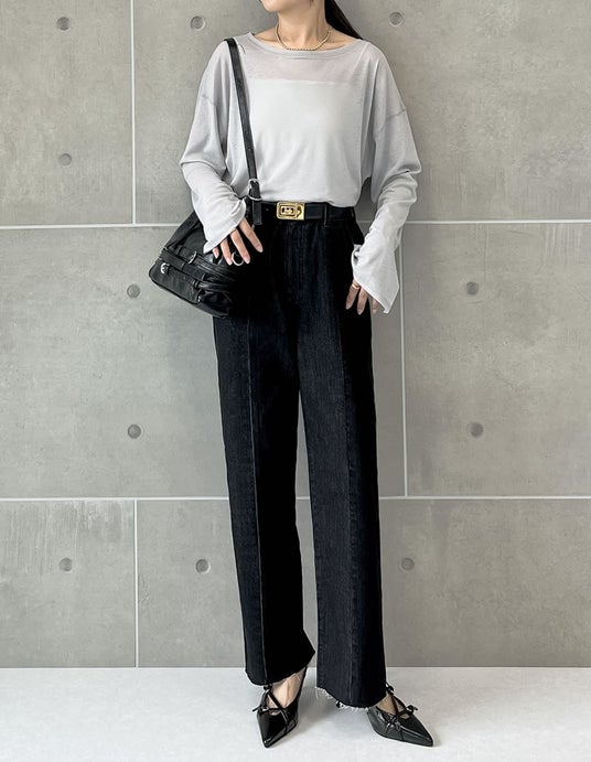 太すぎず、細すぎない絶妙なシルエットと、センターシームの仕様できれい見えする一品。