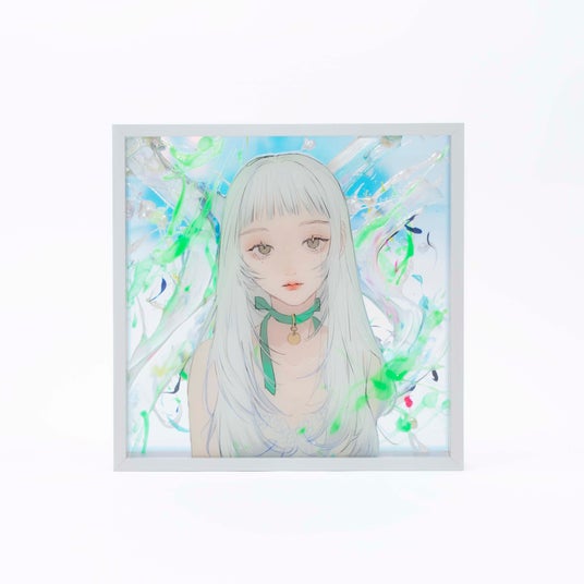 背面に透過オーロラフィルム、前面に高精細UVプリントを施した特別なアート作品。