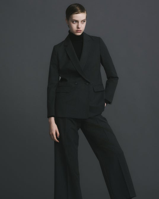 2. 適度なコントラストがポイントのチョークストライプ柄で、スタイリングしやすいベーシックさの中にシャープな印象をプラス。