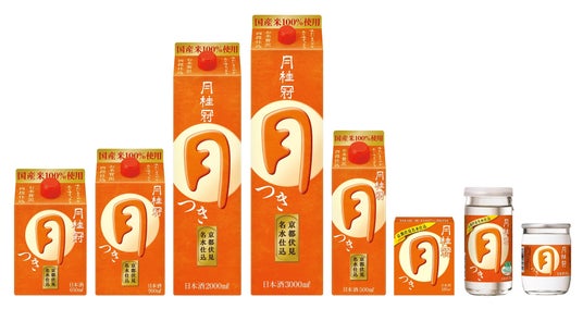 月桂冠「つき」は、アルコール分13度台のソフトタイプで、甘味と酸味のバランスが良いまろやかな味わいと、すっきりとしたあと味が特長です。食事とあわせての飲用や、料理酒としても使用いただくなど、家庭の定番酒として親しまれています。商品ラインナップとして、大容量から小容量まで、パック詰6アイテム(3L、2L、900mL、650mL、500mL、180mL)、カップ詰2アイテム(210mL、100mL)の計8アイテムを揃え、様々な用途にお応えしています。