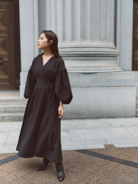 一枚で着映える、立体的なシルエットが魅力のワンピース。膨れジャガードという表面が少しぽこぽこした生地を採用しました。肩下からふんわり広がるボリュームスリーブがお気に入りのポイント。手首が覗いて華奢見えも叶えてくれます。普段使いはもちろん、オケージョンにも活躍。寒くなったらタートルを中にレイヤードした着こなしもおすすめです。