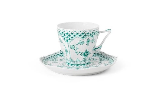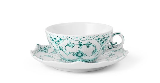 エメラルドグリーンフルーテッド フルレース ティーカップ&ソーサーお茶の瞬間を最大限に楽しみ美しく演出するためにデザインされたクラシックなティーカップ&ソーサーです。