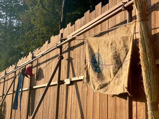 天然木の柵で囲まれた、愛犬と一緒にキャンプを楽しめる専用スペースを提供。他のキャンパーからの視線を気にせずに愛犬との時間を満喫できます。