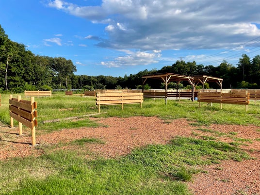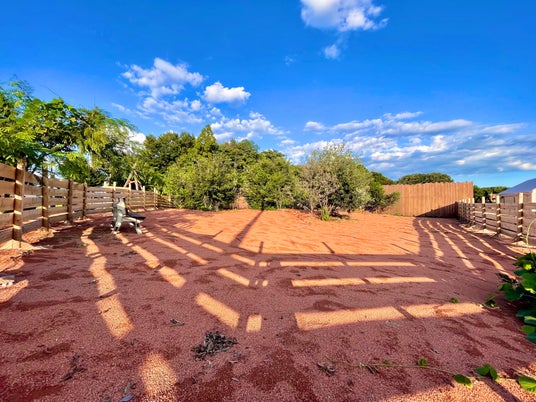アメリカの大地を思わせる赤色の地面は動物の足に優しく、環境にも配慮した瓦パウダーを採用。