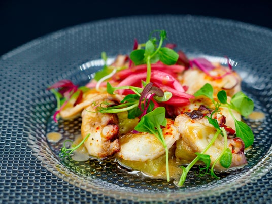 噛むほどに広がる真蛸の旨みにピクルスの酸味がよく効いた、夏らしくみずみずしい前菜です。