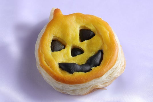 かぼちゃ餡とカスタードクリームをデニッシュ生地で包み、焼き上げました。サクサクした食感とバターの芳醇な香り、かぼちゃのやさしい味わいを楽しめる、ジャック・オー・ランタンを模ったパンプキンパイです。