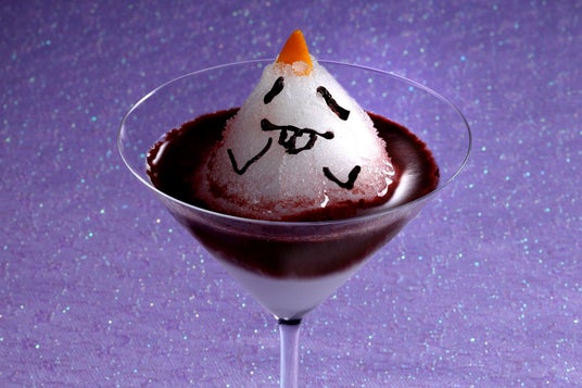 ブラッディーバスで癒されているゴーストをイメージしたデザートカクテル。ゴーストを模した柑橘系のフローズンが赤ワインとチョコレートクリームリキュールをベースに仕上げた液体に溶けると、オランジェットのような甘くほろ苦い大人の味わいをお楽しみいただけます。