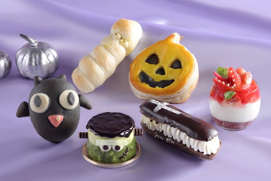 カフェ&グルメショップ カフェベルでは、かぼちゃ本来の自然な甘みを味わえる、ジャック・オー・ランタンを模ったパンプキンパイなど毎年ご好評をいただいているキュートなスイーツとパンに加え、今年はフランケンシュタインをモチーフにしたスイーツなどが新登場。ハロウィーンパーティーやお子様へのお土産に最適です。