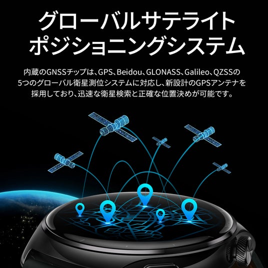 内蔵のGNSSチップは、GPS・Beidou・GLONASS・Galileo・QZSSといった衛星測位システムに対応しています。これによりアプリでの運動ルートの確認もおこなうことが出来ます。