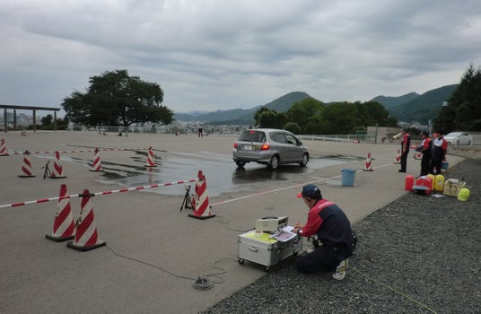 公道では「したくない」急ブレーキ体験を通して、ブレーキを踏む強さ・速さや車の挙動を確認します。