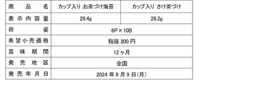 株式会社 永谷園(社長:成田 健一、東京都港区)は、永谷園のお茶づけをお湯を注ぐだけで楽しめる「カップ入り お茶づけ海苔」「同 さけ茶づけ」(税抜200円)を2024年9月9日(月)より全国発売いたします。