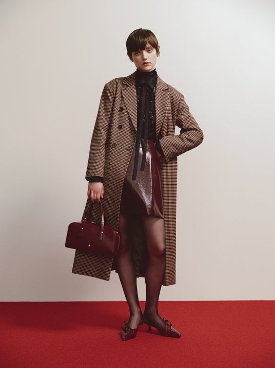 COAT 26,950yen BLOUSE 20,900yen SKIRT 11,880yen BAG 15,950yen SHOES 14,960yen PIERCED EARRINGS 4,950yen