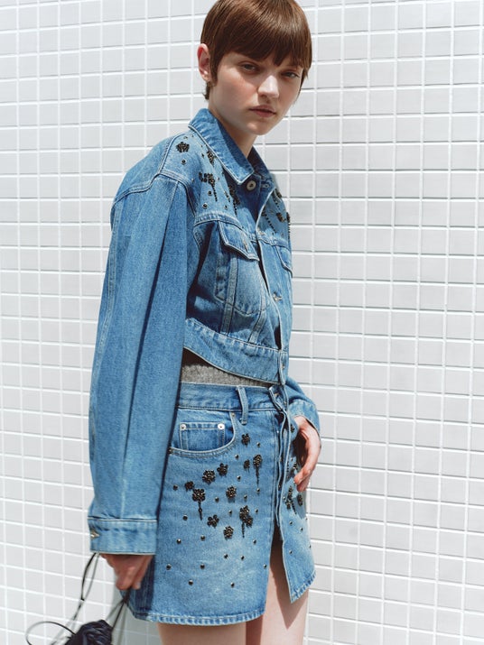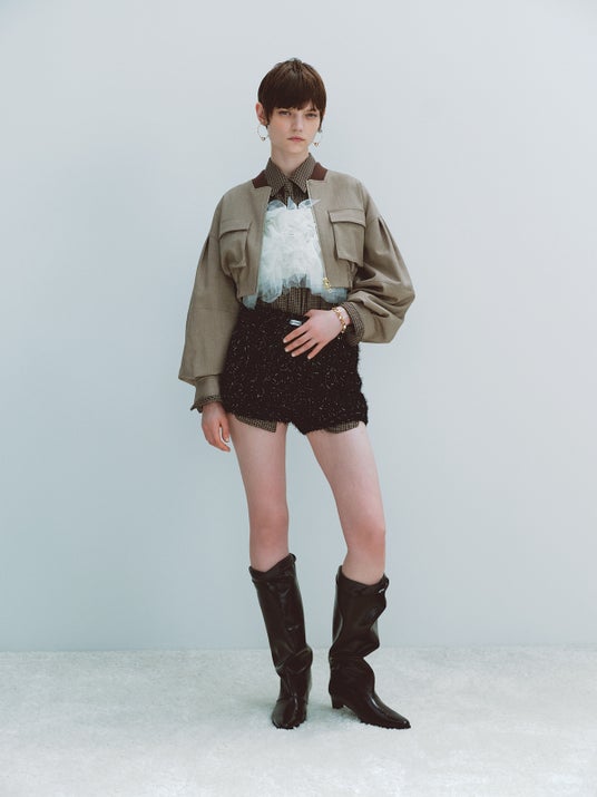 オーバージャケットに合わせたコンパクトなボトムやニュアンスカラーのシースルー
