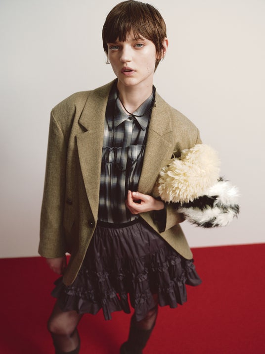 JACKET 20,900yen SHIRT 15,950yen SKIRT 12,980yen SHOES 17,930yen BAG 9,900yen BAG 9,900yen LEG WARMER 2,970yen NECKLACE 5,170yen