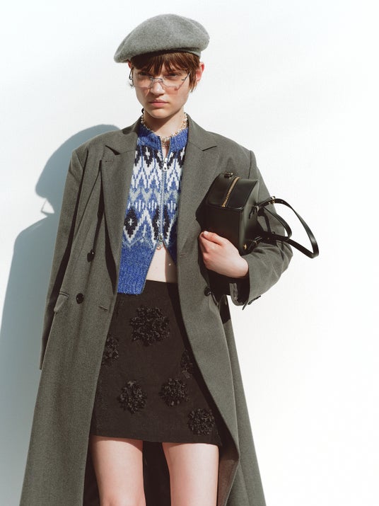 COAT 26,950yen KNIT TOPS 14,960yen SKIRT 15,950yen SHOES 14,960yen HAT 5,940yen BAG 15,950yen GLASSES 3,520yen NECKLACE 4,950yen