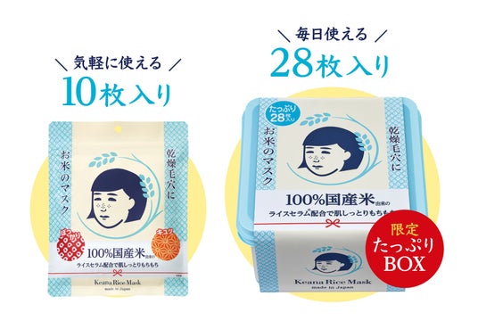そんな大人気の「お米のマスク」を毎日使いたい…という声にお応えすべく、今年も大容量のBOXタイプを数量限定で発売いたします。