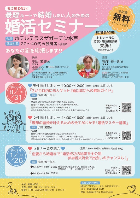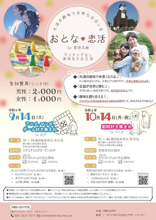 茨城県常陸太田市では、未婚化・晩婚化対策のための結婚支援として、出会いの場創出のための交流型のイベントや縁結びツアーなどを実施します。