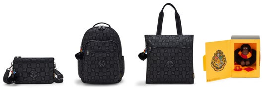 各商品にはキプリングモンキーと共にホグワーツのシンボルのエナメルチャームが付き、内側にはリサイクルポリエステルの裏地が各寮の鮮やかなカラーで彩られています。