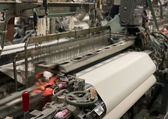 倉敷帆布は糸に糊を使わずに生地を織れる技術を持っており、織り機から上がってきたものをそのまま生地として使用することが可能。
