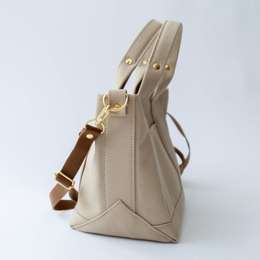 そんな倉敷市 児島に工場を構えて130年以上になる「倉敷帆布」で織られた、丈夫で軽い帆布を使って完成したのが「2WAY帆布ミニトート」です。