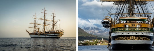 「アメリゴ・ヴェスプッチ号」は1930年5月12日に造船が起工され、1931年2月22日に完成したイタリア海軍の練習帆船です。その美しい船体は世界で最も美しい帆船の一つとして知られ、新大陸「アメリカ」を発見したとされるイタリア・フィレンツェ出身の探検家アメリゴ・ヴェスプッチの名に由来すると言われています。「アメリゴ・ヴェスプッチ号」は2023年7月よりイタリアのジュノバを出発し、31カ国を寄港するワールドツアーを開始しました。これまでに米国・ロサンゼルスをはじめ16カ寄港し、日本は17カ国目の寄港先となります。