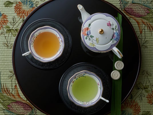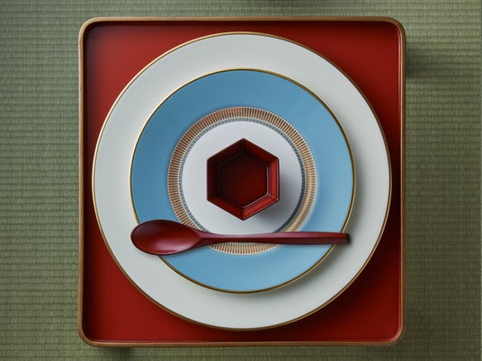 ウェッジウッド「ヘリア」× 輪島塗「六角猪口」「朱御膳」