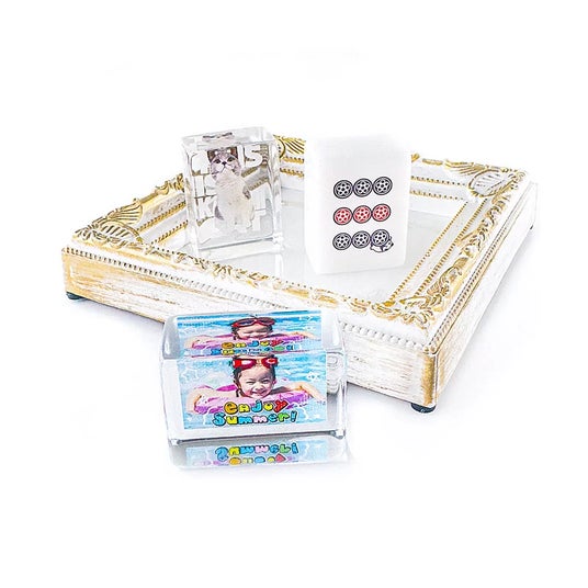 オリジナルペーパーウェイト印刷サービスは、実用性とデザイン性を兼ね備えた商品です。少し大きめのサイズですが、麻雀牌風のユニークなグッズとしてもおすすめです。