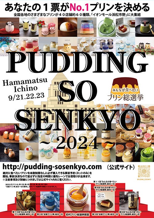 関西及び東海・関東地方中心にイベントの企画・運営を展開する株式会社サテライトジャパン(本社:兵庫県芦屋市)は、イオンモール浜松市野(運営:イオンモール株式会社)にて”北海道から沖縄まで全国各地のさまざまなプリンが大集結する”「みんなが食べたいプリン総選挙」を2024年9月21日(土)~23日(月・祝)の3日間の日程で開催します。