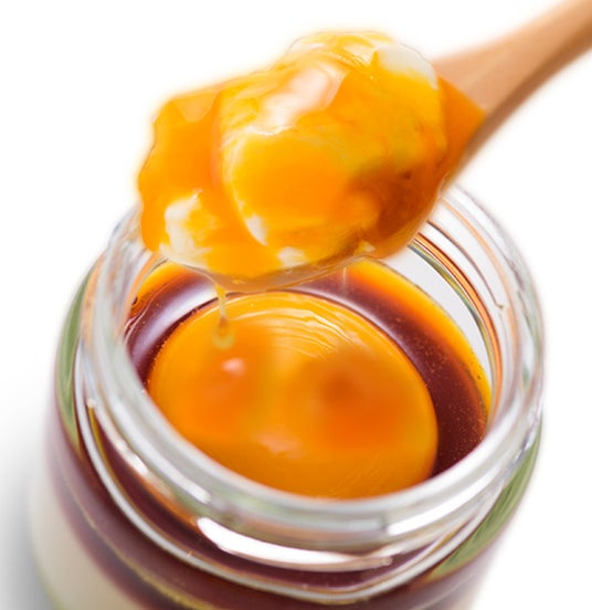 その斬新な食べ方にみんなが驚きます。まずはそのままで、次に付属の塩カラメルソースをかけて、さらに黄身をかけてさっと混ぜて食べると、最初のプリンから3段階の味変を楽しむことができます。各種メディアや受賞歴もありその味は絶賛されています。驚愕のたまごかけプリンで最高の贅沢をお楽しみください。