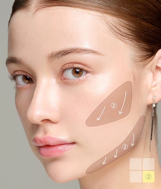 【How to Make】引き締めて見せたい輪郭や頬の下など、気になる部分に指やブラシで塗りぼかす。