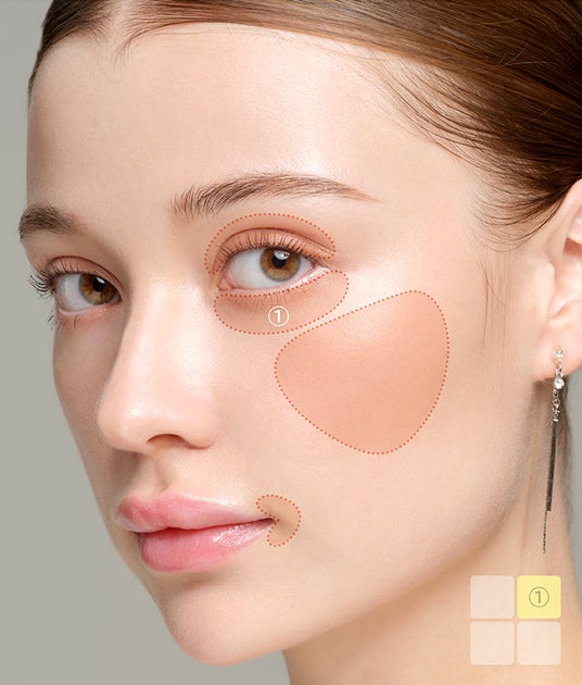 【How to Make】指やブラシで適量とり、目の下のクマや口角のくすみ、頬の赤みに置き、馴染ませるようにぼかす。