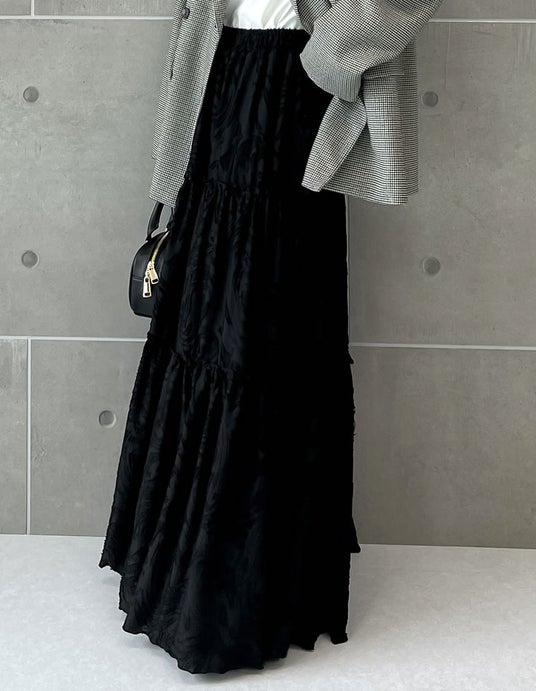 ジャガード生地が、シーズンライクな着こなしを後押しするスカートが登場しました。