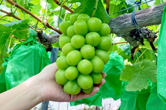 1本の枝に1房のみを残し、摘果することで大きく甘い果実が実るように、手間暇かけて1本1本丁寧に育てられております。房が実ってからも、袋掛けや房の形や粒が均等になるように、収穫まで粒を間引く作業が続きます。