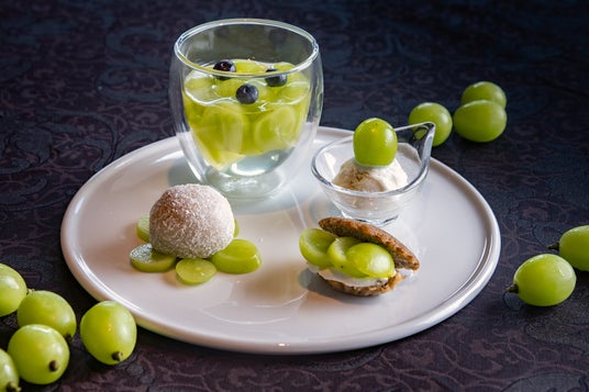 梅田スカイビル(大阪市北区)39Fの中国料理 燦宮では、弾ける口当たりとあふれ出る果汁が魅力のシャインマスカットを使用したデザートが楽しめるコースを販売いたします。