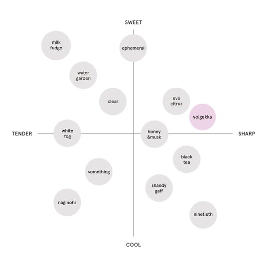ウッディとバルサムが軽やかさと重厚感を両立し、月明かりに向かって花を咲かせる樹木をイメージした、全体的に温かみのある華やかな仕上がりに。