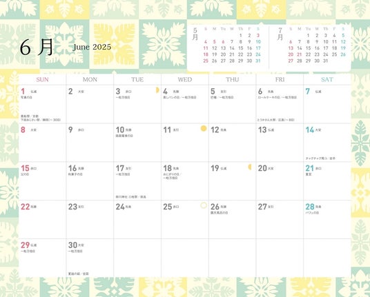 <洋柄「ハワイ」カレンダー(中面)>