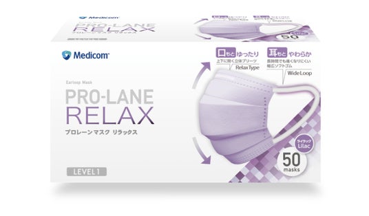 上下に開く立体プリーツ仕様で口元が快適な「プロレーンマスク リラックス」に、新色「ライラック」が登場しました。