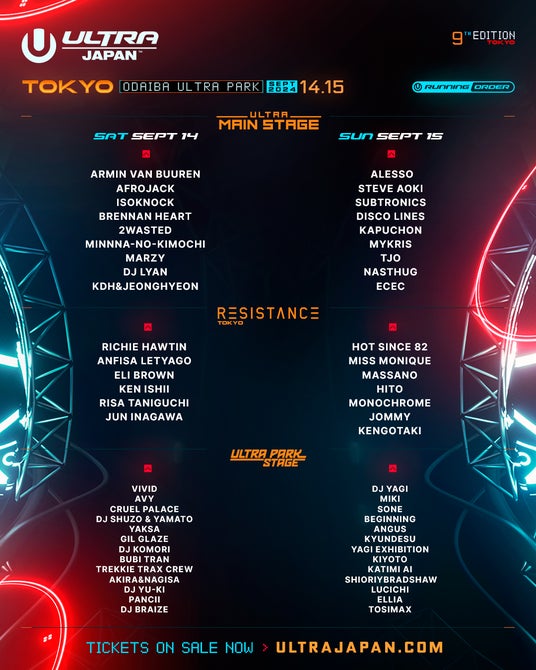 ULTRA JAPANは今回で 9 回目の開催となる世界最高峰のトップ DJ が集結するBIG FES。