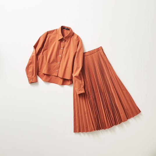 トレンドのショート丈ブラウス&ハリのある生地で大人っぽさを演出してくれるプリーツスカート。セットではもちろん、別々に使用してコーデの幅を広げてくれるアイテム。