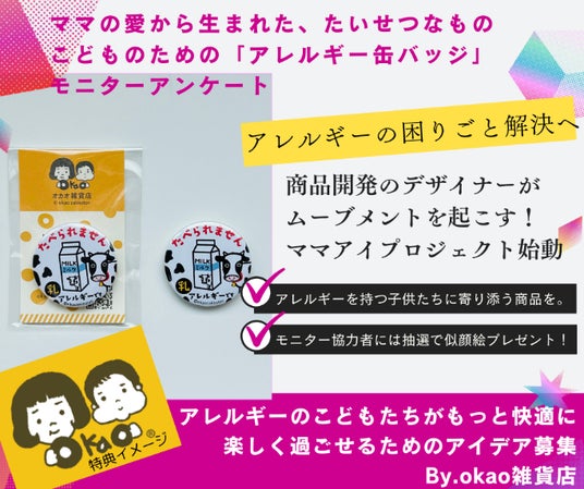 商品開発のデザイナーがムーブメントを起こす!ママアイプロジェクト始動ママの愛から生まれた、たいせつなものこどものための「アレルギー缶バッジ」モニターアンケート