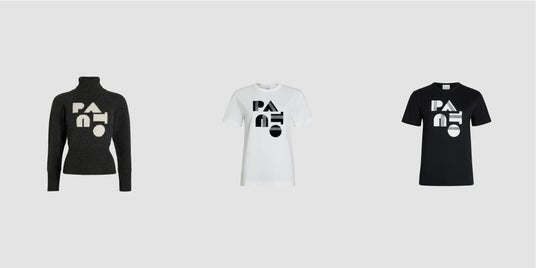 左:アールデコニット(税込¥135,300)中央・右:アールデコTシャツ(税込¥39,600)