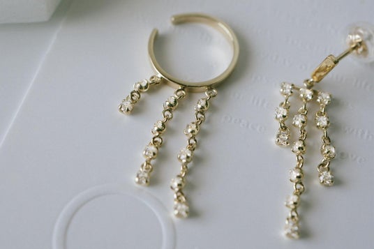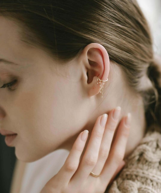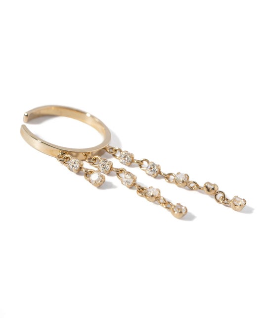 繊細なフリンジチェーンと艶やかなフープがエレガントなイヤーカフ