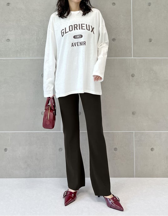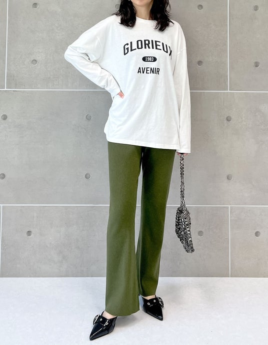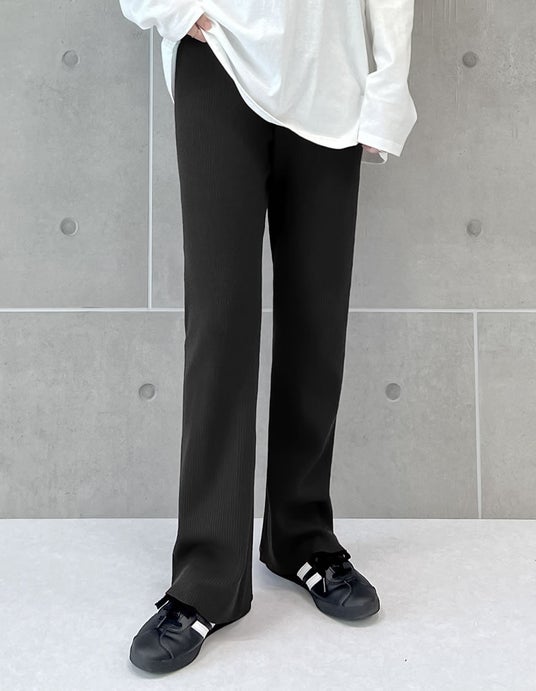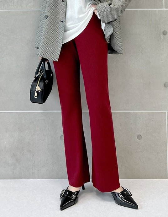 リブの縦ライン×スリムフレアのシルエットで美脚が叶う優秀アイテム。