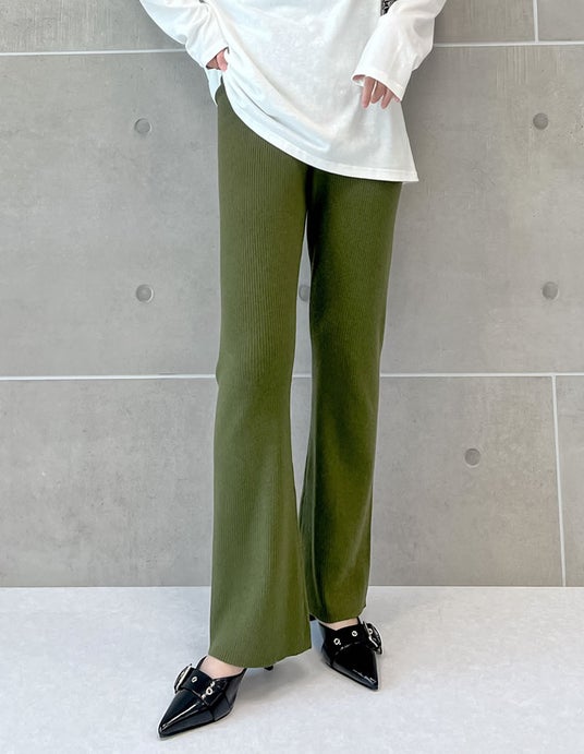 リラクシーかつこなれ見え!リブニットスリムフレアパンツ
